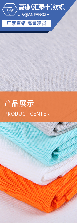 平紋布:各類拉架平紋、普通平紋、花式平紋,面料紋路清晰、光澤好,成分包括100C、100T、100N、T/C、CVC、N/C、N/T、MODAL、TENCEL、ROYAN、BAMBOO等,適宜合類休閑、運(yùn)動(dòng)、時(shí)尚、商務(wù)及內(nèi)衣類服飾.<br /> 珠地布:各類單雙珠、六角、斜紋珠地,珠眼飽滿、顆粒清晰,伸縮保形性好,吸濕、透氣,可兼做抗紫外、吸濕導(dǎo)汗、香味等功能,適宜各類休閑、商務(wù)、運(yùn)動(dòng)類T恤.<br /> 健康布:組織精密、紋路清晰、手感爽滑立挺,膚感強(qiáng),適宜各類運(yùn)動(dòng)、休閑、時(shí)尚類服裝,成分包括100C、100T、T/C、CVC、C/R等.<br /> 衛(wèi)衣布:各類單、雙衛(wèi)衣,拉架衛(wèi)衣,布面肌理豐富,耳仔整齊,立體飽滿,有良好的吸濕透氣及保暖功能.<br /> 不倒絨:保暖、透氣,不起球、不掉毛,適宜合類休閑套裝,情侶、新套裝、保暖內(nèi)衣.<br /> 橫機(jī)面料:11、22及提花類,用于各類領(lǐng)袖及下欄配套.<br/>