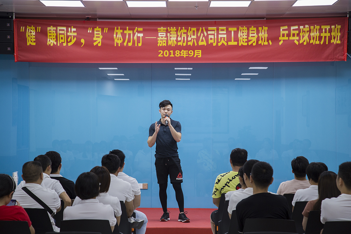 開(kāi)班儀式上,首先由公司聘請(qǐng)的專業(yè)健身教練向職工介紹了健身鍛煉對(duì)身體的好處及注意事宜,健身可以讓大家身心健康,更加充滿活力;隨后總經(jīng)理助理蔡振雄代表公司對(duì)本次活動(dòng)開(kāi)班表示祝賀并致辭,通過(guò)開(kāi)設(shè)健身班及乒乓球班旨在緩解職工生活和工作的壓力,進(jìn)一步提高職工的健康體質(zhì),希望大家能夠堅(jiān)持鍛煉,持之以恒。