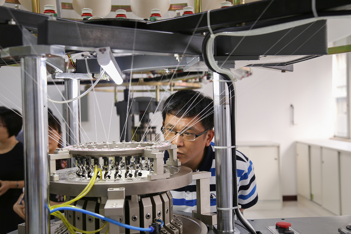 張槎街道辦事處副主任高玉軍向閩紡織服裝行教指委一行介紹了張槎針織發(fā)展情況,張槎在2002年被中國針織協(xié)會評為中國針織名鎮(zhèn)。嘉謙公司創(chuàng)新研發(fā)中心促進(jìn)了張槎針織產(chǎn)業(yè)的轉(zhuǎn)型,對產(chǎn)學(xué)研的深度融合有重大作用,為中國“織夢小鎮(zhèn)”打下夯實(shí)的基礎(chǔ)。