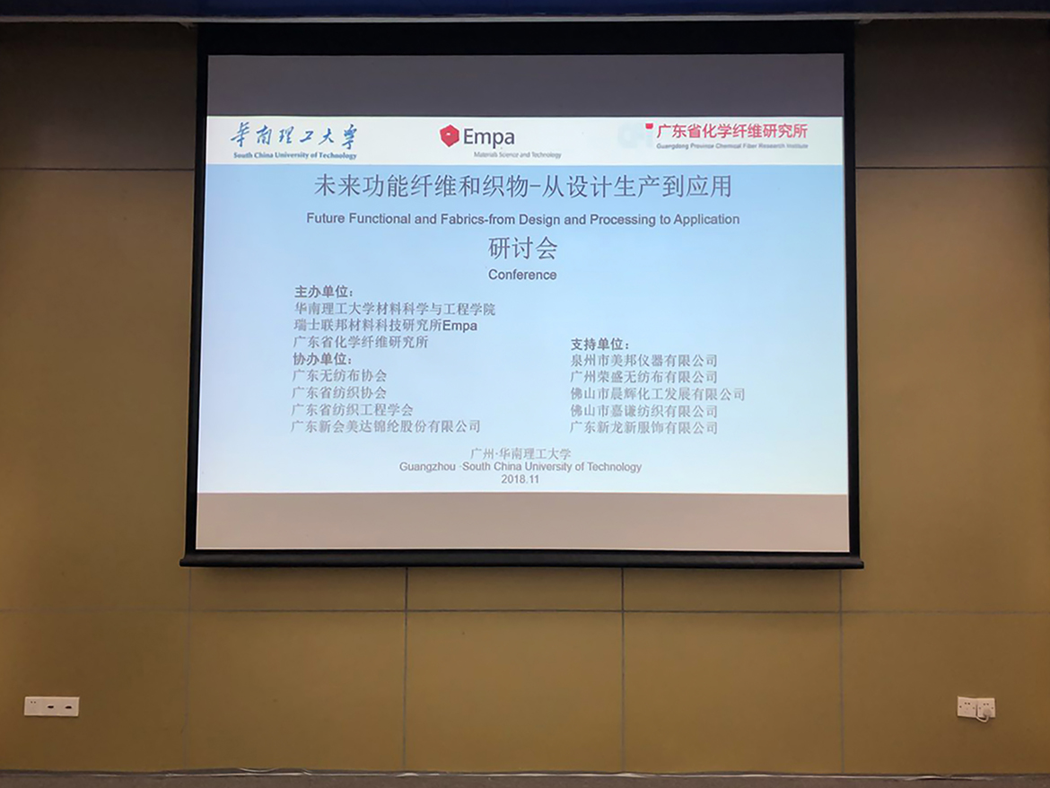 2018年11月15—17日,由華南理工大學(xué)、瑞土Empa、廣東省化學(xué)纖維研究所主辦,廣東省紡織協(xié)會(huì)、廣東省紡織工程學(xué)會(huì)等單位協(xié)辦,廣東省紡織協(xié)會(huì)常務(wù)副會(huì)長(zhǎng)單位佛山市嘉謙紡織有限公司單位支持的“未來(lái)功能纖維及織物—從設(shè)計(jì)、加工到應(yīng)用”與“織物與非織造物高值化研究及應(yīng)用”為主題的國(guó)際學(xué)術(shù)研討會(huì)于華南理工大學(xué)召開(kāi),聚集了國(guó)內(nèi)外的15名優(yōu)秀專(zhuān)家學(xué)者,其在紡織行業(yè)纖維研發(fā)領(lǐng)域發(fā)揮著重要的作用。嘉謙紡織極為重視品牌的深度開(kāi)發(fā)和產(chǎn)品創(chuàng)新,尤其注重綠色健康環(huán)保舒適產(chǎn)品的研發(fā)與推廣,公司董事長(zhǎng)蔡景輝先生親自率隊(duì)創(chuàng)新研發(fā)部夏鈺翔主任與采購(gòu)部敖獻(xiàn)發(fā)經(jīng)理一同參加,共同交流學(xué)習(xí)探討未來(lái)功能纖維和織物、纖維和無(wú)紡布材料的高價(jià)值利用,希望能借此契機(jī),嘉謙紡織不斷提高核心研發(fā)創(chuàng)新能力、持續(xù)推出時(shí)尚、新潮的高檔針織布料,引領(lǐng)行業(yè)發(fā)展,助力共同打造構(gòu)筑“科技、時(shí)尚、綠色”的紡織強(qiáng)國(guó)中國(guó)夢(mèng)!